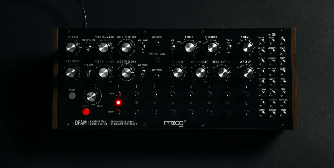 To Sync multiple DFAM units together, simply patch from the TRIGGER output on the Patch bay of the Primary unit, into the ADV / CLOCK input on the Secondary unit.